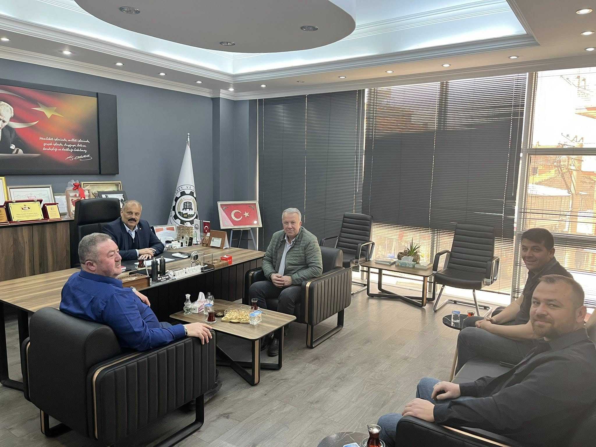 Yönetim Kurulu Başkanımız Veli Özcan ve Yönetim Kurulu Üyemiz Mücahit Uğur, Afyonkarahisar Ticaret Borsası Meclis Başkanı Ali Rıza Gürakar ve beraberindeki heyeti Odamızda ağırladı